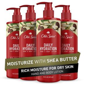 Loção de hidratação diária para mãos e corpo Old Spice para homens com manteiga de karité, hidratação 24 horas por dia, 7 dias por semana, 16 fl oz (pacote com 4)