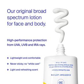 Loção Play Everyday FPS 30 oferece proteção de espectro super amplo para o rosto e o corpo. Enriquecida com antioxidantes de girassol, alecrim e arroz, a fórmula protege contra danos UV, protegendo a pele do fotoenvelhecimento e da desidratação. Ideal para um dia de diversão, esta loção resistente à água e ao suor é hidratante, leve e de rápida absorção. Perfeito para todos os tons de pele.