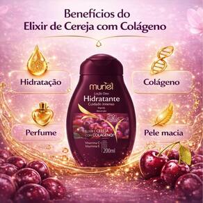 Descubra o segredo para uma pele radiante e irresistivelmente perfumada com a Loção Deo Hidratante Corporal Muriel Elixir De Cereja Com Colágeno 200ml. Esta loção hidratante corporal, desenvolvida pela renomada marca MURIEL, é a aliada perfeita para quem busca hidratação intensa, firmeza e um toque aveludado para todos os tipos de pele. Com uma fragrância envolvente de cereja e o poder rejuvenescedor do colágeno, ela transforma sua rotina de cuidados em um ritual de beleza e bem-estar, proporcionando uma pele visivelmente mais saudável e radiante.