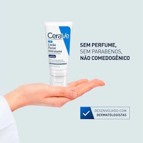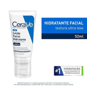 Loção Facial Hidratante CeraVe 52ml Loção Facial Hidratante CeraVe 52mlDesenvolvido com dermatologistas, CeraVe Loção Facial Hidratante hidrata e ajuda a restaurar a barreira protetora da pele do rosto. Esta fórmula contém as 3 ceramidas essenciais para a pele, ácido hialurônico e niacinamida, promovendo hidratação o dia todo através de sua exclusiva tecnologia MVE, de liberação prolongada de ativos hidratantes. Indicado: Para pessoas com pele normal a seca, sua textura é fluida e de rápida absorção para uma sensação suave na pele. Ativos: 3 Ceramidas Essenciais 1, 3 e 6-II : Todos os produtos CeraVe contém as 3 ceramidas essenciais que a pele precisa, ajudando a restaurar e manter a proteção da barreira natural da pele. Exclusiva Tecnologia MVE: Liberação prolongada de ativos para uma hidratação que dura o dia todo. Ácido Hialurônico: Ajuda a reter a hidratação natural da pele Niacinamida: Estimula as ceramidas e colágeno, com ação antiinflamatória, suavemente clareadora Benefícios: - Textura ultra leve - Ajuda a restaurar e manter a proteção da barreira natural da pele. - Liberação prolongada de ativos para uma hidratação que dura o dia todo. - Ajuda a reter a hidratação natural da pele. - Estimula as ceramidas e colágeno, com ação antiinflamatória, suavemente clareadora. - Suave na pele: Fórmula de rápida absorção. - Não obstrui os poros. - Sem perfume. Modo de Usar: Aplicar a Loção Facial Hidratante CeraVe generosamente no rosto e pescoço. Evitar o contorno dos olhos. Tecnologia CeraVe: Um revolucionário sistema de distribuição foi desenvolvido e denominado Tecnologia de Emulsão Multivesticular MVE , que libera ingredientes hidratantes ao longo de 24 horas, camada por camada, para ajudar a manter a pele macia durante todo o dia. Cerave: Desenvolvido com Dermatologistas Em 2005, os dermatologistas da CeraVe desenvolveram uma linha de produtos para a pele enriquecidos com uma mistura de três ceramidas essenciais ceramidas 1, 3 e 6-II , ácidos graxos e outros lipídios para ajudar a reparar e fortalecer a barreira natural da pele. Atualmente, a CeraVe oferece mais de 70 produtos desenvolvidos para hidratar, restaurar e reabastecer todos os tipos de pele.