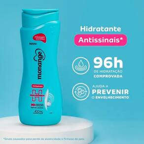 Hidratante Monange Antissinais com Ácido Hialurônico O Hidratante Monange Antissinais com Ácido Hialurônico 200 ml oferece 96 horas de hidratação avançada com ação comprovada, além de auxiliar na prev