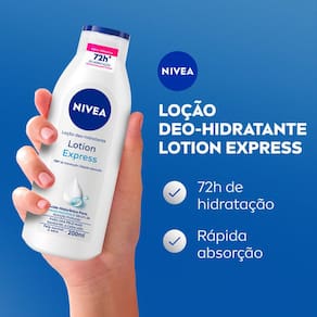 LOÇÃLoção Nivea Lotion Express Hidratação profunda para Pele Normal a Seca 200ml Hidratação profunda. Nivea Lotion Express, Loção Hidratante Desodorante Corporal, proporciona mais de 48 horas de hidra