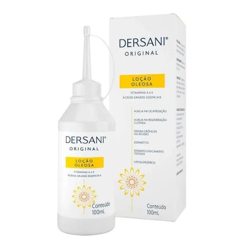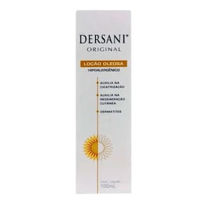DERSANI LOÇÃO hidratante 100ML - SANIPLAN Dersani autêntico está indicado na prevenção e tratamento das escaras de Graus I, II e III. Tratamento de feridas crônicas ou agudas na ausência de processos infecciosos e também no tratamento dos Eczemas: Atópico, Asteatósico, de Estase além da Radiodermite. Composição:Triglicerídeos de Ácidos Cáprico e Caprílico, Óleo de girassol clarificado, Lecitina, Palmitato de retinol, Acetato de Tocoferol e Alfa-Tocoferol. Modo de Usar: Na cicatrização, irrigar a lesão com soro fisiológico 0,9%. Secar a pele ao redor da ferida. Aplicar o óleo diretamente sobre o leito da lesão ou umedecer gazes estéreis e aplicar sobre a ferida. Ocluir com gaze estéril. Fixar conforme a necessidade do local da ferida. Reaplicar a cada 12 horas. Na prevenção de escaras, aplicar o óleo nas regiões afetadas, após higienização da pele.