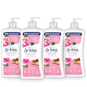 Loção suavizante para mãos e corpo St. Ives para mulheres com bomba, hidratante diário de rosa e óleo de argan para pele seca, feita com hidratantes 100% naturais, 21 fl oz, pacote com 4 - ST.