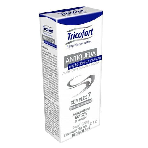 A Loção Antiqueda Tricofort reúne propriedades Fortificantes, Regeneradoras e Reguladoras da secreção sebácea, que auxiliam no controle da Queda capilar.Sua exclusiva fórmula contém Disodium Cystinyl Disuccinate - Aminoácido, um complemento nutritivo com elevado teor de enxofre que possibilita a reestruturação da queratina, além de ser um substrato energético que aumenta o metabolismo dos queratinócitos, o que incrementa a atividade capilar , auxilia no processo de crescimento dos cabelos e na diminuição da queda, além de 7 poderosos extratos vegetais(COMPLEX 7) e Modernos ativos Antiqueda.Modo de Uso:Aplicar diariamente o produto, massageando suavemente com a polpa dos dedos até que esteja bem distribuído, devendo permanecer no couro cabeludo. Recomenda-se o uso combinado desta Loção com o Shampoo Tricofort Antiqueda e o Condicionador Capilar TricoforPrincipais Benefícios:Limpeza Profunda do Couro Cabeludo,Regenera os fios,Regula a Oleosidade,Nutre a raiz dos Cabelos,Estimula o Crescimento CapilarAutorização de Funcionamento: 2.01659-1M.S: 23351.482664/2005-49Ficha técnica- cor: branco