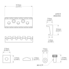 Lock Nut (Trava Cordas) Guitarra Dourado Spirit LK42.5-GD - 42.5mmGaranta a estabilidade de afinação e o visual elegante da sua guitarra com o Lock Nut Spirit LK42.5-GD Dourado.O Lock Nut (Trava Cordas) Spirit LK42.5-GD é um componente essencial para guitarristas que utilizam sistemas Floyd Rose. Projetado para oferecer máxima estabilidade das cordas, este acessório em metal de alta qualidade e acabamento dourado previne desafinações indesejadas, mesmo durante performances intensas. Seu design não só garante a performance, mas também adiciona um toque de elegância e sofisticação ao seu instrumento, sendo ideal para músicos que buscam durabilidade e estilo.Diferenciais:Estabilidade superior: Essencial para sistemas Floyd Rose, garante que suas cordas permaneçam afinadas.Acabamento dourado: Proporciona um visual premium e aumenta a resistência à corrosão e ao desgaste.Fabricado em metal robusto, assegurando longa vida útil e confiabilidade.Compatibilidade precisa com guitarras que utilizam a largura de nut de 42.5mm.Mais sobre o Produto:Este Lock Nut Dourado da Spirit Guitar Parts é um acessório indispensável para aprimorar a experiência de tocar, oferecendo segurança e confiança.O modelo LK42.5-GD foi desenvolvido na Coréia do Sul, seguindo padrões de alta qualidade de fabricação.Perfeito para músicos que exigem precisão na afinação e um acabamento que se destaca no palco ou no estúdio.Dicas de Uso:Para a instalação, certifique-se de que o Lock Nut esteja corretamente alinhado e apertado para garantir a estabilidade máxima das cordas.Verifique a compatibilidade da largura do nut da sua guitarra (42.5mm) para assegurar um encaixe perfeito.Limpe o componente regularmente com um pano macio e seco para manter o brilho do acabamento dourado.Ficha Técnica:Marca: SPIRIT GUITAR PModelo: LK42.5-GDCor: DouradaMaterial: MetalLargura da Trava (Nut Width): 42.5 mmComprimento (Overall Length): 42 mmTipo de Montagem: SuperiorInstrumentos Compatíveis: Guitarras com sistema Floyd RoseCódigo Universal do Produto (EAN): 7899559803223MPN: H5701_40SKU: 006387Origem: Coréia do SulCondição: NovoGênero: UnissexLinha: Spirit Guitar PartsPeso do Produto: 0.08 kgUnidades por Embalagem: 1Garantia: 90 dias Marca: Não Informado