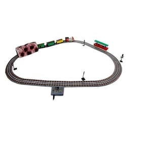 Movido a pilha, acende o farol quando está em movimento e emite som de locomotiva.