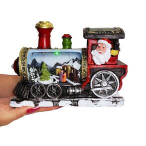 - Modelo: Locomotiva Natalina - Material: Resina, Metal, Polipropileno e LED - Peso: 1,130 kg - Tamanho: 27cm x 12cm x 18 cm - Funcionamento: 3 pilhas tipo AA não inclusas - Cena natalina com LED - Canções de Natal - Decoração natalina Ean: 7908281336739