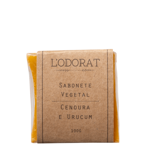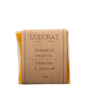 Sabonete em barra vegetal. L'ODORAT Cenoura e Urucum limpa, além de possuir alto poder hidratante e um aroma levemente cítrico.