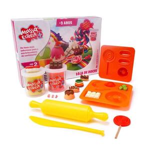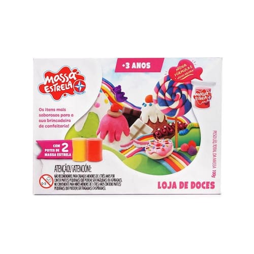 Loja De Doces Com Massinha De Modelar - Brinquedos Estrela A Loja de Doces com Massa Estrela conta com dois potes de massa de 50g e duas formas com moldes de pirulito, balas, chocolate, gelatinas, donuts, churros e bolinho. Idade recomendada (RECOMMENDED_AGE_GROUP): + 3 anos | Código Inmetro: 001 793 / 2020 Ean: 7896027561340