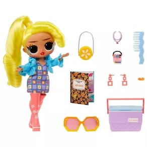 Lol Surpresa Boneca da moda - Hana Groove 91658 Apresentando a nova boneca da moda LOL Surprise Tweens, Hana Groove, fã de estilo retrô e lojas de discos Abra mais de 10 surpresas e conheça Hana Groove, que adora aumentar sua coleção de discos e está sempre pronta para dançar. Como a vida da festa, ela gosta de convidar suas melhores amigas para sair, principalmente em um dia ensolarado Vista Hana Groove com sua linda moda inspirada nos anos 70, incluindo seu elegante vestido de crochê e suas botas rosa de cano alto feitas para caminhar. Seu amor por um dia ensolarado pode ser visto em sua bolsa com estampa de flores e óculos de sol da moda Sua roupa também inclui uma jaqueta curta com enfeites de babados, brincos quadrados, uma pulseira adorável e colares legais em camadas Ela também vem com um lindo cooler que é o melhor acessório para qualquer piquenique ou festa dançante, junto com uma adorável câmera polaroid pronta para capturar cada momento.