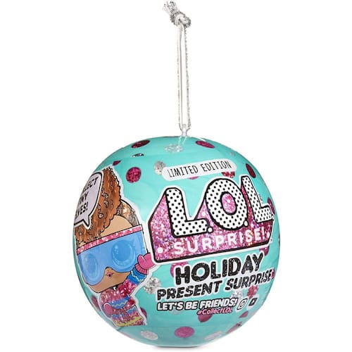 É a temporada para brilhar com l.O.L. Surprise! Surpresa presente de feriado. Unbox 7 surpresas, incluindo uma boneca de edição limitada e um adorável personagem elfo minúsculo. A boneca edição limitada ganhou uma maquiagem brilhante com detalhes de glitter, novas modas e acessórios de inverno. Cada boneca inclui um personagem elfo minúsculo em uma caixa presente – um presente de férias que cada boneca quer dar a ela BFF. Colete todos os elfos minúsculos para emparelhá-los com sua boneca. Alimente ou banhe sua boneca para uma surpresa na água. A bola ornamental pode ser como uma exibição para suas bonecas ou pendurada na árvore como um ornamento. Cada surpresa de L.O.L. ! Boneca Holiday Present Surprise inclui 7 surpresas: (1) Mensagem Secreta; (2) Garrafa; (3) Acessório; (4) Elfo minúsculo; (5) Roupa; (6) Sapatos; (7) Surpresa L.O.L. Boneca de edição limitada Holiday Present Surprise. Colete todas as 6 bonecas e elfos minúsculos.