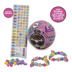 LOL SURPRISE - Fashion Biju 1195 Elka Fashion Biju - LOL Surprise - Elka Mais de 70 peças para criar lindas bijus personalizadas para sair por aí e ficar igual a boneca LOL Surprise, super Fashion Customize montando colando os adesivos Crie pulseira e colar, use e abuse de todas as peças Indicado para crianças acima de 3 anos. CERTIFICAÇÃO: REGISTRO 003197&130;-OCP-006