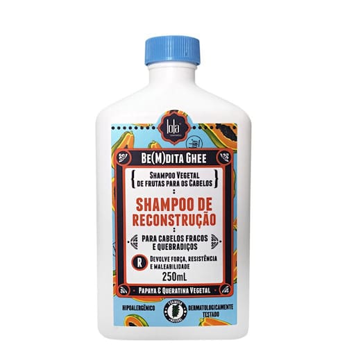 O Shampoo de Reconstrução Be(M)dita Ghee Papaya & Queratina Vegetal Lola Cosmetics traz mais força e resistência, além de combater a quebra e os fios elásticos. Também atua na reposição da massa capilar dos cabelos após processos químicos, mecânicos e ambientais.