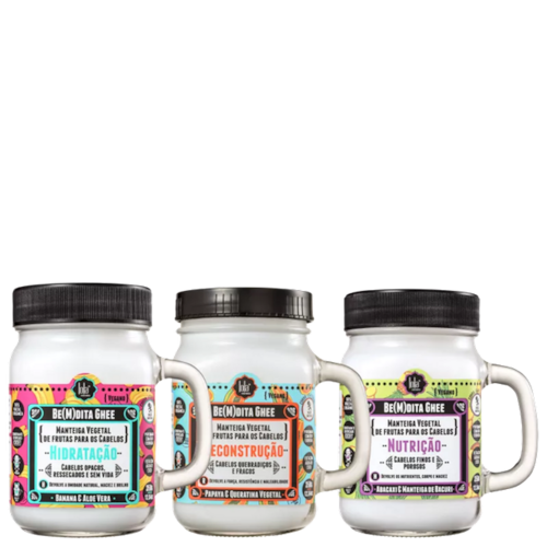 O Lola Cosmetics Be(m)dita Ghee Kit é a solução completa para transformar seus cabelos, trazendo hidratação, nutrição e reconstrução em um único kit poderoso. Este trio de manteigas vegetais orgânicas e veganas foi especialmente desenvolvido para atender às necessidades dos fios opacos, ressecados, finos, porosos, quebradiços e fracos.