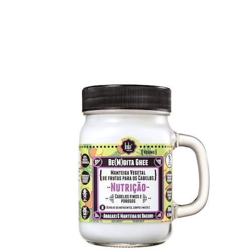 Máscara Lola Cosmetics Be(M)dita Ghee Nutrição tem textura de manteiga vegetal à base de água de coco, é Vegana e orgânica. Consegue devolver lipídeos à fibra capilar e garantir a vitalidade e o corpo dos fios, além de combater a porosidade e o ressecamento. ela ajuda também no crescimento saudável dos fios.