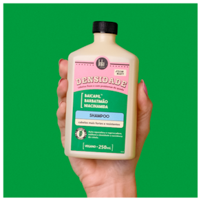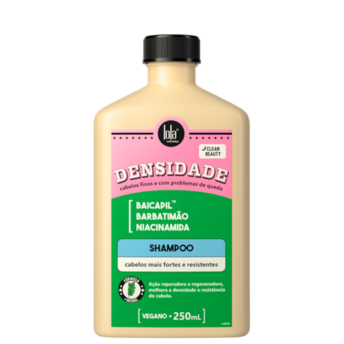 Shampoo para cabelos finos e com problemas de queda. Lola Cosmetics Densidade proporciona fios mais saudáveis e fortes.