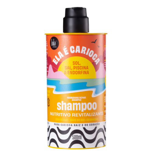 Shampoo nutritivo revitalizante para todos os tipos de cabelo. Shampoo Nutritivo Revitalizante Lola Cosmetics Ela é Carioca Sol, Sal, Piscina & Endorfina proporciona uma limpeza eficaz, sem agredir os fios.