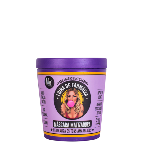 Máscara matizadora para cabelos loiros naturais, mechados ou descoloridos. Lola Cosmetics Loira de Farmácia Matizadora matiza e neutraliza tons alaranjados.
