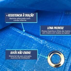 Lona prolona leve 8x4 azul Composição Lona plástica com trama de polietileno de alta densidade revestido com duas camadas de polietileno de baixa densidade. Possui bainha soldada, reforçada com corda interna e ilhós de aço zincado de metro em metro. Material 100 por cento impermeável, lavável, leve, maleável, imune à ação de bactérias e fungos, e com proteção anti-uv aumenta a resistência ao ressecamento causado pelos raios solares . Cor: azul. Gramatura/micragem: aprox. 190g/m2 acabada +-5 por cento. Aprox. 330 micras. Medida: 8 metros x 4 metros 4x8 pode haver variação de dimensão +/- 2 por cento Quantidade de ilhós na lona: 24 ilhóses Usos Indicada para proteção contra a ação de chuvas, sol e poeiras. Usos frequentes: - tendas; - cobertura e forros de piscinas; - pesca e camping; - coberturas de materiais e equipamentos em ambiente fechado e no tempo; - cobertura de carga em caminhão e caminhonetes; - forração de pisos, barracas, bagageiros; - divisórias; - feiras, entre outros. Cuidados - não guardar a lona molhada; - para limpeza utilizar apenas sabão neutro e esponja macia; - evitar contato com materiais pontiagudos; - ao utilizar no tempo: Prender bem a fim de evitar o chicoteamento da mesma; Prender com caimento para evitar barrigas de acúmulo de água. O que você deve saber antes de comprar: -o que é micras Micras se tornou uma referência de mercado no que se refere a lonas, estando relacionada a espessura do material. Quanto maior a micragem melhor é a qualidade e durabilidade da lona. Por exemplo, lonas com 300 micras são consideradas mais fortes e duráveis do que lonas com 100 micras. No entanto, é interessante avaliar também a gramatura da lona no processo de escolha, que segue a mesma linha de raciocínio, quanto maior melhor e mais resistente. -qual medida comprar Antes de realizar a compra da sua lona, meça o local adequadamente na sua largura l e comprimento c . Certifique-se da necessidade ou não de sobras laterais e escolha a peça pronta que melhor atende a sua medida final. - no caso do transporte de cargas, é necessário considerar a altura de sua carga junto com as dimensões da carroceria para descobrir a largura l e o comprimento c mais adequados. - no caso de piscinas ao medir a largura l e o comprimento c , é necessário acrescentar pelo menos 50cm de sobra em cada lado. -existe alguma cola ou fita para reparos ou emendas dessa lona Não temos conhecimento de existir no mercado cola ou fita específica para reparo desse material, o que pode ser nesses casos como medida paliativa é o uso de fita silver-tape. Marca: Não Informado