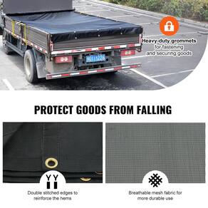 VEVOR Lona de malha de caminhão basculante, 2,4 x 5,5 m, capa resistente preta revestida de PVC com bolso duplo de 14 cm, 510 g, ilhós de latão, tecido reforçado com costura dupla para sistema de caminhão basculante manual ou elétrico - Lona de malha que embala um soco: diga olá a uma lona de malha de caminhão basculante trabalhadora feita de tecido de malha de 2,4 x 5,5 m com uma espessura de 1000D. Respirável, forte e reforçado com bainhas de costura dupla, está pronto para um transporte sério. Você pode ficar tranquilo sabendo que seus produtos são confortáveis e seguros. - Proteja seus bens: não tenha medo de derramamentos ou quedas com nosso kit de lona de reboque de despejo. Os bolsos frontais e traseiros vêm em três camadas de PVC. Pronto para levar um pouco de áspero enquanto mantém seus produtos seguros em todas as estações – agora esse é o tipo de guarda-costas que você precisa para sua carga. - Bolsos práticos: esta lona de malha para caminhão basculante possui dois bolsos com tecido de vinil dentro. Aproveite o nosso bolso frontal! Com um tamanho de 13 ± 0,10 cm, é perfeito para colocar em um rolo. E na parte de trás? Um bolso aconchegante de 8,5 ± 0,10 cm, perfeito para o seu arco de retenção antivela. Proteger sua carga nunca foi tão confortável! - Argolas de latão para a vitória: colocamos nossas tachas de latão em torno desta lona de malha revestida de vinil de caminhão basculante. Literalmente! Com ilhós de latão 4# resistentes e duráveis a cada 60 cm, sua lona está sempre segura e a instalação se torna fácil. - Adapta-se às suas necessidades: Transporte de cargas grandes? Verificar. Transportando pequenas mercadorias? Absolutamente. Armazenar produtos temporariamente? Sem problemas. Nossa lona de reboque basculante é adequada para caminhões, reboques e muito mais. É o polivalente que você não sabia que precisava.