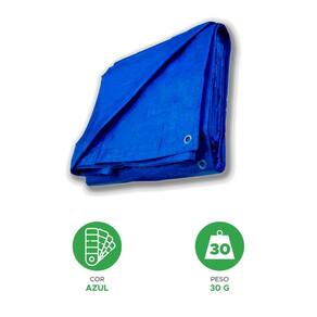 A lona é feita de polietileno de alta qualidade e é resistente à água e ao sol. Ela possui ilhós de metal para facilitar a amarração.