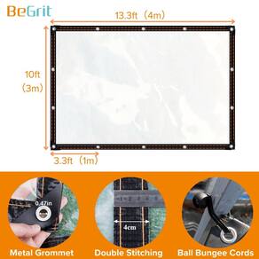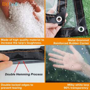 Procurando uma lona transparente para suas plantas/estufa? Procurando por uma lona transparente para sua gaiola de animal de estimação? Procurando por uma lona transparente para sua piscina pervenir neve, folhas, etc? A capa de lona transparente impermeável da BeGrit pode ajudá-lo! É perfeito para cobertura, galpão de plantas, cobertura, tenda, cortina, lona de varanda, capa de carro, almofada de umidade, etc. Características: Polipropileno resistente, durabilidade e resistência a rasgos. Esta lona é transparente, impermeável, à prova de vento e à prova de poeira, torna sua estufa quente, protege suas plantas. Aplicável para alojamento de gado, edifícios de aves, estufas, estruturas de aro, celeiros, canis e muito mais. - O pacote inclui: Você receberá 1 peça de lona transparente resistente, seu tamanho é de cerca de 3 x 4 m, vem com 14 cabos elásticos esféricos. - Conveniente para armazenar: a lona de plástico transparente pode ser dobrada e dobrada à vontade e ocupa apenas um pequeno espaço quando não estiver em uso, então não há necessidade de se preocupar com problemas de armazenamento. - Design transparente: 90% transparente, adotando material impermeável transparente, para que você possa conhecer o conteúdo interno sem abrir a lona, nossas lonas transparentes são as cortinas externas perfeitas para manter tudo à vista. Perfeito para pátios, varandas, gazebos. - Isolamento e umidificação: mantém os elementos externos e o interior aquecidos, protegendo seu galinheiro no inverno e também atua como uma estufa para proteger as plantas no inverno, pode evitar que as plantas de jardim congelem. - Múltiplas funções: Ótimo para cobrir carros, trailers, barcos, abrigos, madeira, móveis e piscinas de jardim. Também adequado para uso doméstico e profissional, por ex. durante obras de construção e renovação. - Na BeGrit, mantemos nosso compromisso com a qualidade e atendimento ao cliente excepcional. Se você tiver alguma dúvida ou preocupação, e resolveremos isso dentro de 24 horas!