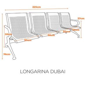 A Longarina Aeroporto Dubai possuí base fixa, assentos em aço com acabamento perfurado e braços nas extremidades, base em formato “Y” e sapatas reguláveis.