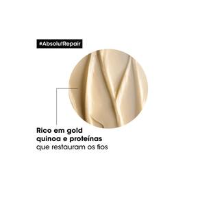 A fórmula dourada da Máscara Absolut Repair Gold Quinoa + Protein Golden L'Oréal Professionnel atua na reparação da fibra capilar para que o cabelo revele uma aparência mais saudável. Sua textura inovadora permite unir o poder de tratamento dos ativos com a leveza de um gel, e as partículas douradas conferem brilho intenso aos fios.