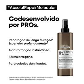 Pré-tratamento para todos os tipos de cabelos danificados. L'Oréal Professionnel Absolut Repair Molecular promove uma fibra capilar restaurada e o fácil desembaraço dos fios.