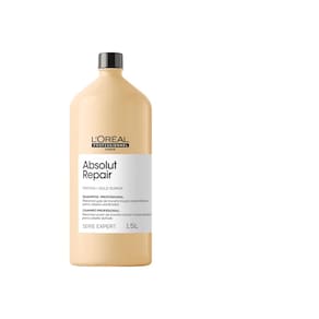 O Shampoo Absolut Repair Gold Quinoa + Protein L'Oréal Professionnel traz ativos que ajudam restaurar a superfície dos fios para que o cabelo revele uma aparência mais saudável. Seu visual ganha muito mais brilho e um toque macio incrível.