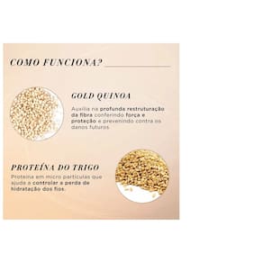 Gino Quinoa e Proteínas: reduz os danos na superfície do cabelo para fios mais brilhantes e com toque leve.