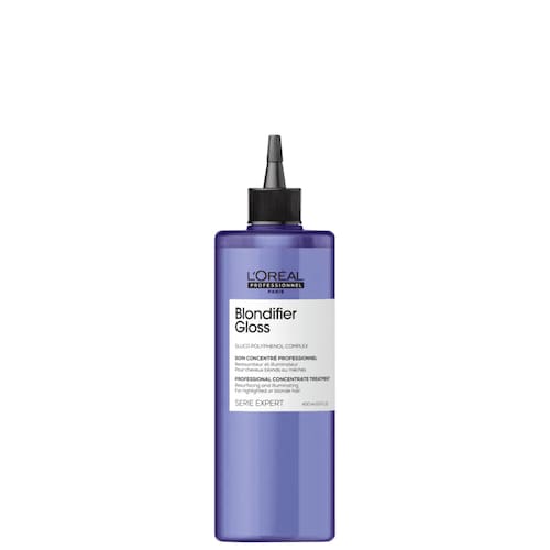 Tratamento concentrado para cabelos loiros ou descoloridos. O L'Oréal Professionnel Blondifier Gloss Concentrate Treatment ressurge a fibra capilar e reduz a quebra do cabelo em 80%.