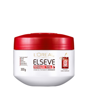 A Máscara Capilar de Tratamento Elseve Reparação Total 5 é um produto de cicatrização do couro. O produto é enriquecido com Cicatri-Ceramida, em uma formulação totalmente nova e potente, que identifica e trata os 5 sinais de danos do dia a dia - quebra, rigidez, opacidade, ressecamento e pontas duplas - para um resultado de plástica capilar. Possui tripla ação: repõe dia após dia os nutrientes perdidos pela fibra, repara a estrutura da fibra deixando os fios uniformes, selados e protegidos cicatrizando a extensão capilar, especialmente os fios danificados. Os resultados? Desde a 1ª aplicação transforma as fibras, que ficam macias e brilhantes, e, progressivamente, confere efeito de plástica capilar.
