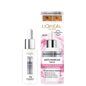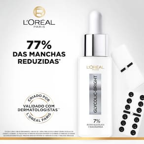 Sérum facial para todos os tipos de pele. L'Oréal Paris Glycolic Bright oferece uniformidade ao rosto, removendo as marcas pigmentadas.