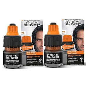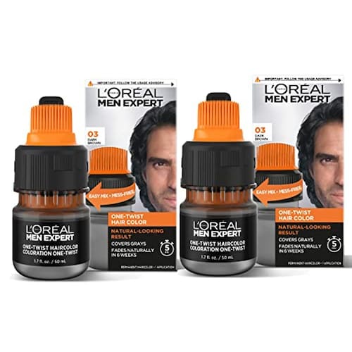 L'Oreal Men Expert One Twist Hair Color cobrirá seus grisalhos em apenas 5 minutos. O produto fornece cobertura cinza indetectável que desaparece lmente em 6 semanas. Tão fácil, basta torcer, agitar e aplicar! Os resultados falam por si, 97% dos homens alegaram satisfação e 9/10 homens recomendariam a um amigo*