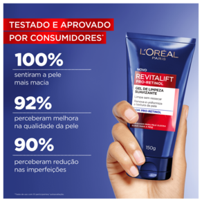 O Gel de Limpeza L'Oréal Paris Revitalift Pro Retinol possui ação suavizante, que melhora a textura, e um alto poder de higienização, que elimina impurezas e uniformizando a face sem ressecar. Produto livre de Parabenos e totalmente cruelty free.