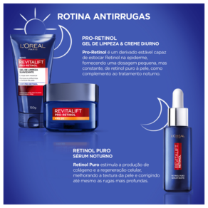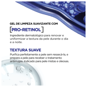 Gel de limpeza para peles mistas e oleosas. L'Oréal Paris Revitalift Pro Retinol, fórmula rica em Pro-Retinol, um ativo dermatológico eficaz para renovar e uniformizar a pele.