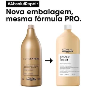 Shampoo para cabelos danificados. L'oréal Professionnel Serie Expert Absolut Repair Gold Quinoa + Protein Instant Resurfacing Shampoo reestrutura a fibra capilar, confere brilho e leveza durante a limpeza diária dos fios. O Shampoo Absolut Repair Gold Quinoa + Protein L'Oréal Professionnel traz ativos que ajudam restaurar a superfície dos fios para que o cabelo revele uma aparência mais saudável. Seu visual ganha muito mais brilho e um toque macio incrível. Ação Gino Quinoa e proteínas: reduz os danos na superfície do cabelo para fios mais brilhantes e com toque leve. Conselho de Aplicação Aplique o shampoo sobre o cabelo molhado e massageie com suavidade. Enxágue e, se necessário, repita o processo. Lembre-se se sempre colocar o shampoo na mão, e esfregá-lo nas suas palmas antes de passar no couro cabeludo. Isso evita com que o produto fique concentrado em apenas uma região do cabeludo. Resultado Seu cabelo fica limpo, até 77% mais reparado, 7x mais brilhante e com toque suave com o uso da linha completa . Marca: Não Informado Ean: 7899671100231