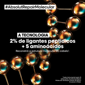 O Shampoo L'Oréal Professionnel Absolut Repair Molecular é uma inovação da L'Oréal Advanced Research, desenvolvida para revitalizar o cabelo de maneira nunca vista antes. Essa tecnologia exclusiva permite a decomposição dos peptídeos em seus componentes fundamentais, que são, então, injetados diretamente nas fibras capilares. Essa ação revolucionária resulta na reconstrução completa da estrutura molecular do seu cabelo, devolvendo-lhe a força e vitalidade. A textura transforma-se em uma espuma rica que não apenas limpa delicadamente, mas também desembaraça os fios, proporcionando um nível elevado de cuidado.