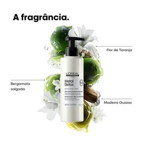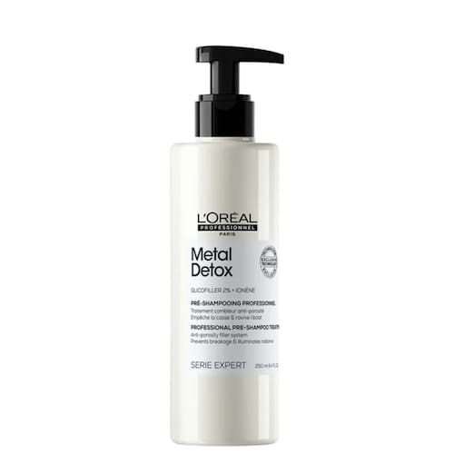 O Pré-Shampoo L'Oréal Professionnel Metal Detox atua como um escudo protetor para os fios, combatendo a ação danificadora do metal presente na água, principal causa da quebra e alteração da cor. Sua fórmula inovadora age antes da lavagem, preparando o cabelo para receber os tratamentos seguintes. Possui o Glicofiller, uma tecnologia patenteada na superfície dos fios, reveste e preenche as microfissuras capilares, enquanto no córtex, penetra profundamente, evitando a absorção excessiva de água com metal.