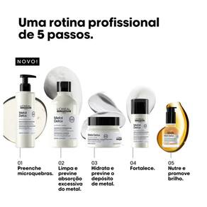Pré-shampoo para todos os tipos de cabelos. L'Oréal Professionnel Metal Detox possui ação anti porosidade, fortalece a fibra e preenche microquebras.
