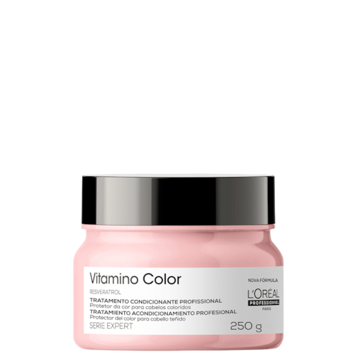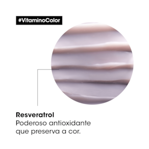 A Máscara L'Oréal Professionnel Serie Expert Vitamino Color tem como principal ingrediente, o Resveratrol, um poderoso antioxidante presente na casca e nas sementes das uvas, que tem a função de preservar a cor dos cabelos por mais tempo. O resultado é um cabelo com 8 semanas de proteção da cor e 7x mais luminosidade.