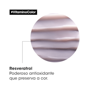 A Máscara L'Oréal Professionnel Serie Expert Vitamino Color tem como principal ingrediente, o Resveratrol, um poderoso antioxidante presente na casca e nas sementes das uvas, que tem a função de preservar a cor dos cabelos por mais tempo. O resultado é um cabelo com 8 semanas de proteção da cor e 7x mais luminosidade.