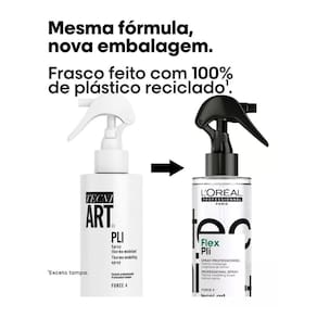 Spray Modelador L'Oréal Professionnel Tecni Art Pli ajuda a modelar e fixar os fios no formato que você desejar, seja uma escova perfeita ou ondas e leve volume. Ele adere ao cabelo com leveza e deixa uma textura muito sedosa, com brilho suave. Por possuir uma fixação eficiente, funciona muito bem em fios grossos, que tendem a ser mais difíceis de modelar.