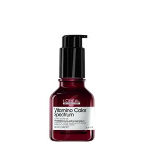O Sérum Capilar L'Oréal Professionnel Vitamino Color Spectrum Glass Shine foi desenvolvido especialmente para cabelos coloridos de todos os tipos, oferecendo múltiplos benefícios em uma fórmula revolucionária. Enriquecido com 5% Alfa-silano, proporciona brilho espelhado instantâneo e resultados duradouros por até 10 lavagens***. Com uma tecnologia avançada, ele cria uma camada protetora na superfície da fibra capilar quando ativado pelo calor.