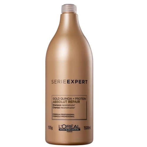 Shampoo para cabelos danificados. L'oréal Professionnel Serie Expert Absolut Repair Gold Quinoa + Protein Instant Resurfacing Shampoo reestrutura a fibra capilar, confere brilho e leveza durante a limpeza diária dos fios.O Shampoo Absolut Repair Gold Quinoa + Protein L'Oréal Professionnel traz ativos que ajudam restaurar a superfície dos fios para que o cabelo revele uma aparência mais saudável. Seu visual ganha muito mais brilho e um toque macio incrível.AçãoGino Quinoa e Proteínas: reduz os danos na superfície do cabelo para fios mais brilhantes e com toque leve.Conselho de AplicaçãoAplique o shampoo sobre o cabelo molhado e massageie com suavidade. Enxágue e, se necessário, repita o processo.ResultadoSeu cabelo fica limpo, até 77% mais reparado, 7x mais brilhante e com toque suave com o uso da linha completa .ANVISA: 25351.145900/2019-44 - 2.00.070-9