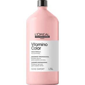 Loréal Professionnel Serie Expert Vitamino Color Resveratrol - Shampoo 1500ml: realiza uma limpeza delicada que não agride e mantém o brilho da cor. Conta com fórmula antioxidante que evita os danos do dia a dia e o desbotamento.