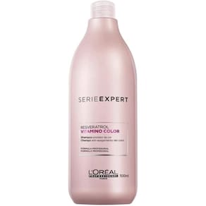 Loréal Professionnel Serie Expert Vitamino Color Resveratrol - Shampoo 1500ml: realiza uma limpeza delicada que não agride e mantém o brilho da cor. Conta com fórmula antioxidante que evita os danos do dia a dia e o desbotamento.