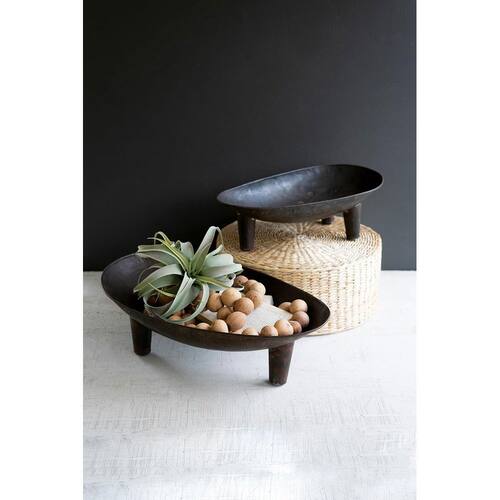 Exiba suas coleções nessas tigelas ovais de ferro. Separe esse conjunto de dois do outro lado da sala ou pegue as chaves em uma e use uma como plantador. Essas versáteis tigelas pretas servem a vários propósitos em qualquer espaço. Grande: 24" x 14" x 8" t Pequeno: 19,25" x 11" x 6,25" t Código UPC: 841628103854 Inclui pés de borracha. Tem marcas de soldagem douradas expostas. O conjunto inclui 2 peças. Um de cada tamanho. Limpe com um pano seco e sem fiapos.